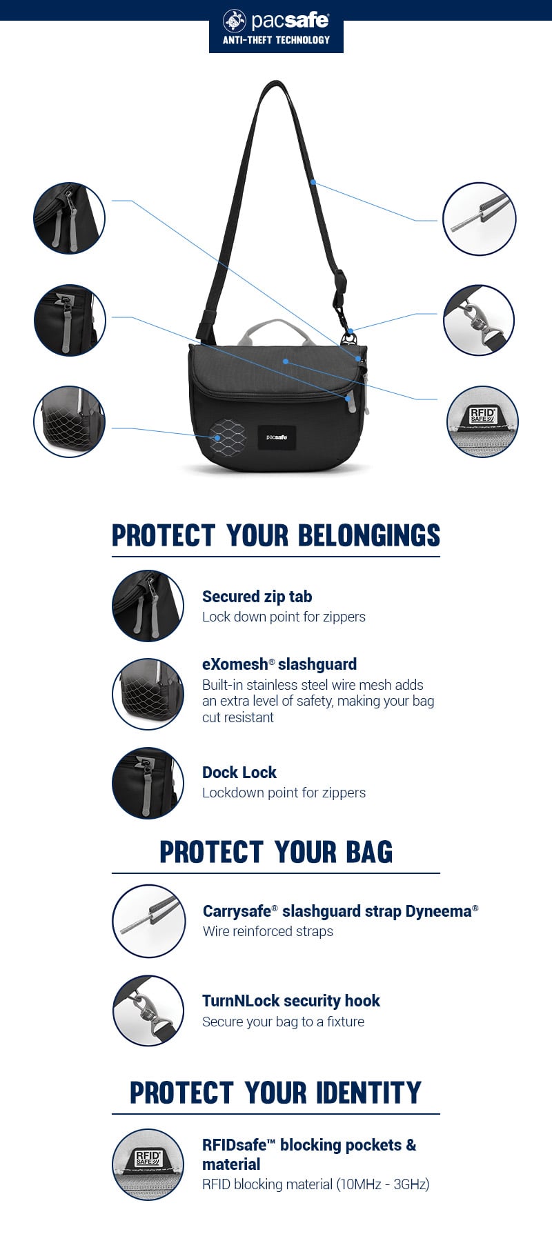 TÍNH NĂNG CỦA Túi đeo chéo Pacsafe® Go Anti Theft Saddle Crossbody